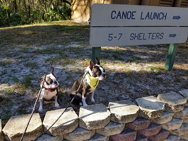 We use these “In Training” bandannas (from Pooch Crafts) just to help other’s know that we like space since the dogs get a little too excited.